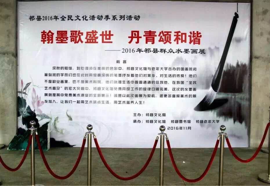 11月5日——10日,祁县文化局主办,祁县文化馆、祁县图书馆、祁县老年大学承办的“翰墨歌盛事,丹青颂和谐——2016祁县群众水墨画展”在我馆展厅展出。